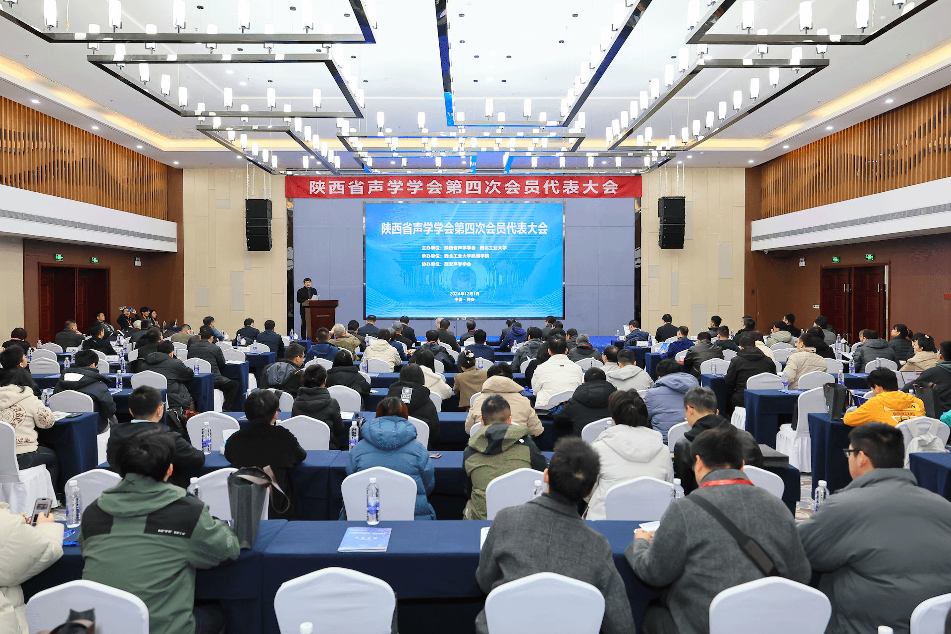 同日,陕西省声学学会还举办了第四次会员代表大会。出席论坛的部分专家学者以及来自省内高校、企事业单位的160余名陕西省声学学会理事和会员代表参加会议。会议审议了第三届理事会工作报告及相关文件,举行了第四届理事会及监事会选举,并召开了第四届理事会第一次会议。会议由曾向阳、黄文超、陈克安分别主持。陕西省科协二级调研员王军辉宣读批复文件。杨益新副校长和中国声学学会副理事长兼秘书长杨军参加并致辞,多个兄弟学会负责人出席会议。
