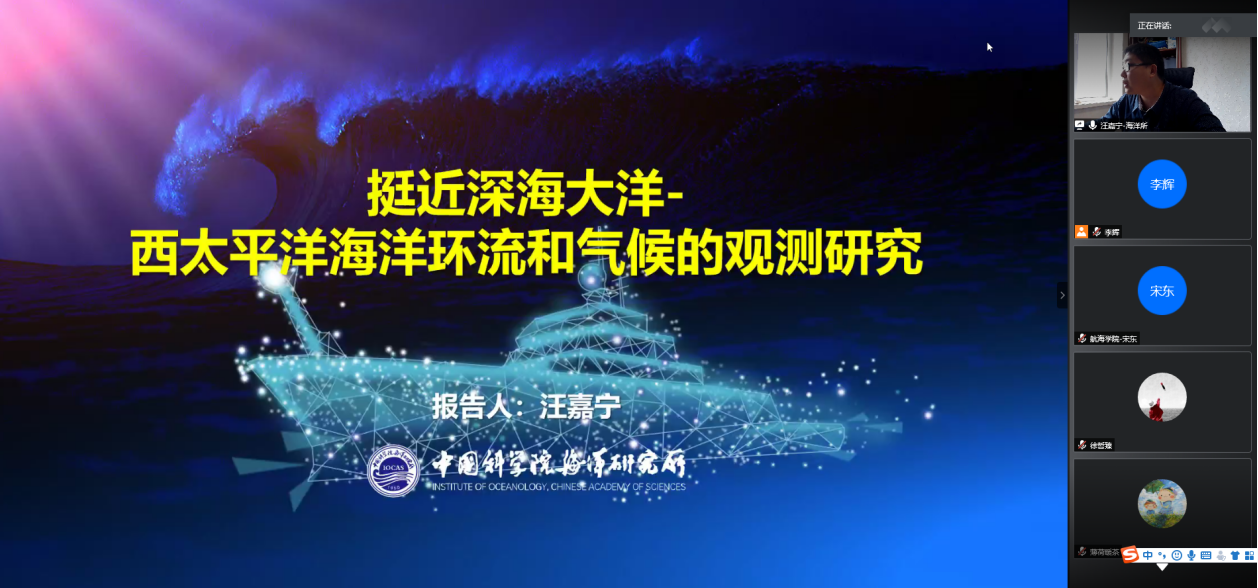 李辉助理研究员的邀请,为学院师生作题为《挺近深海—西太平洋海洋环流和气候的观测研究》的线上学术报告。会议由李辉助理研究员主持,学院30余名师生参会。