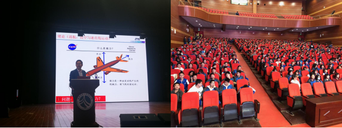 3月25日下午,湖南师范大学附属中学第34届校园科技节开幕式暨科普讲座进校园,王掩刚做客惟一大讲坛,高一年级上千名学生聆听讲座,王教授讲述的一个个生动风趣的飞天小故事,丰富了与会同学的航空知识,激发了同学们对航天事业的热情,与会师生踊跃发言提问,积极与王教授交流互动,对于大家的提问,王掩刚教授一一进行了详细的解答。讲座后高一年级集体观看航模表演。