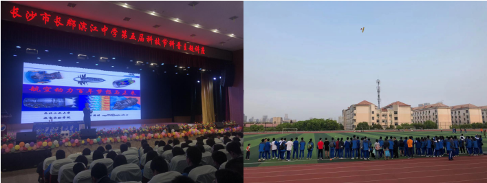图1 长郡滨江中学科普讲座和航模表演