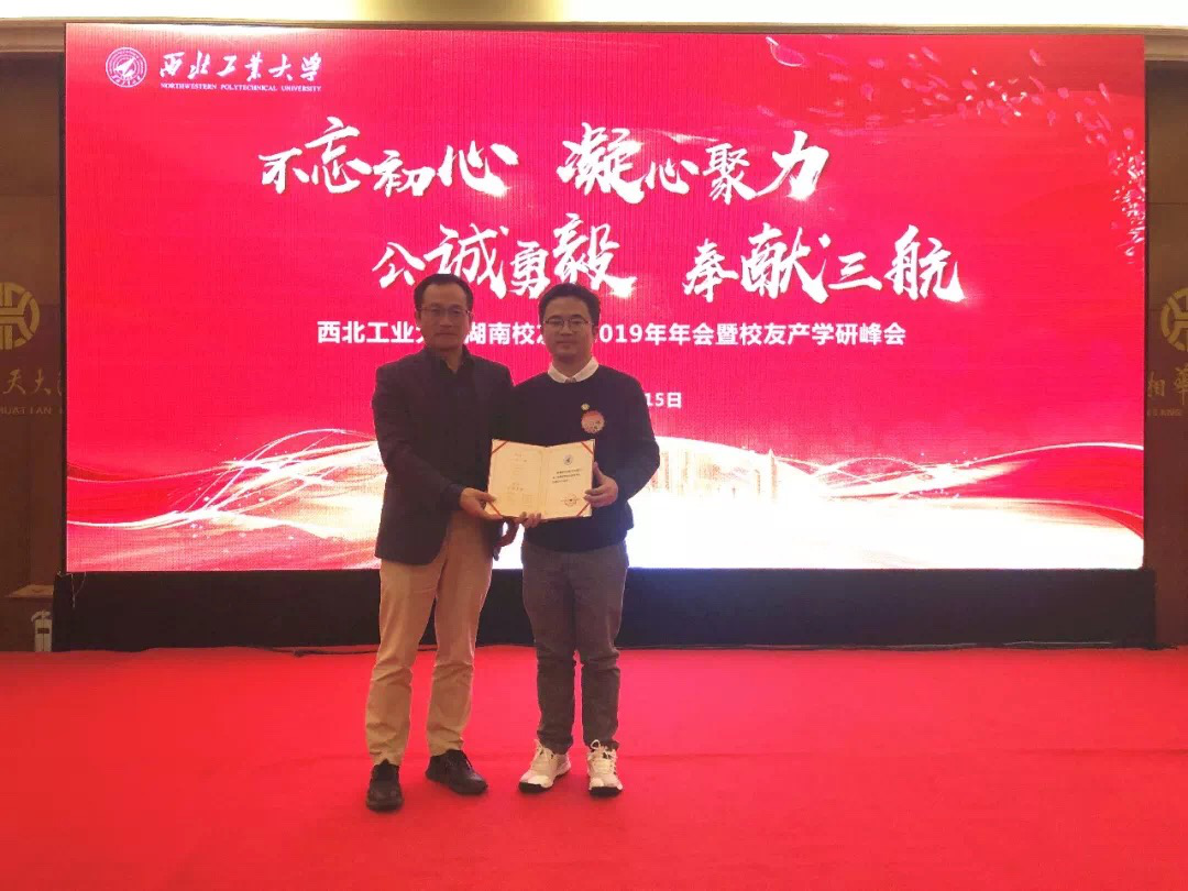 不忘初心、凝心聚力、公诚勇毅、奉献三航。会议校友产学研交流环节中有10余家校友企业家上台进行产学研交流发言,包括金天钛业的航空航天航海钛合金产品、国天电子海军装备产品、航华电子无人机产品、瑞仪卡减震产品、世鑫科技高铁刹车产品、哦耶科技共享打印机产品、老账房公司财务税务管理产品、航天科技43所康本公司复合材料产品、三航智能舰船雷达无人机减速器及动力产品、风竹能源科技的环保脱硝产品。会后孙武斌副秘书长代表校友总会为西工大湖南校友之家揭牌。
