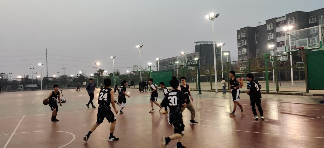 比赛过程中,参赛的队员们都爆发出自己全部的力量,快打猛攻、认真防守。天色渐暗,但球员们的热情好似点燃了球场,让球赛变得激情四溢,到处都是青春的力量。
