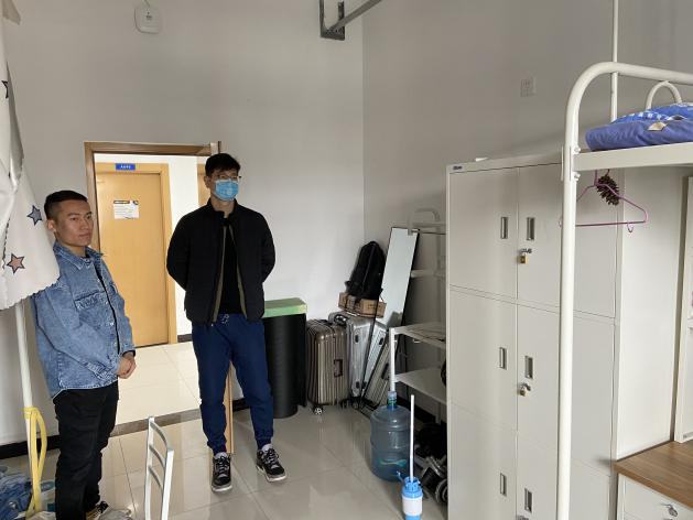 全体老师进入学生宿舍,看望刚刚返校的同学们,向同学们带去新学期的问候,并强调同学们要做好防疫,健康迎来新学期。