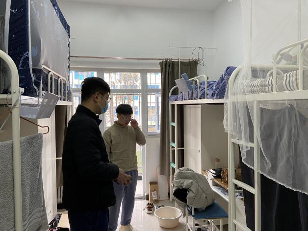 27日中午,院长助理张龙与学生事务主管崔晓来到了长安校区海天苑一号楼,看望刚刚返校的研一同学。张龙与崔晓逐个走访研一同学的宿舍,查看学生宿舍供暖情况,了解大家的旅途情况,并与部分同学沟通交流了有关本学期计划组织的学生活动的情况,针对性地提出了一些动漫屋