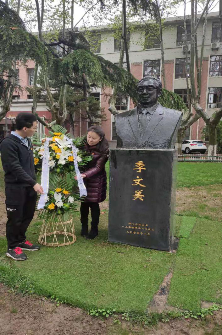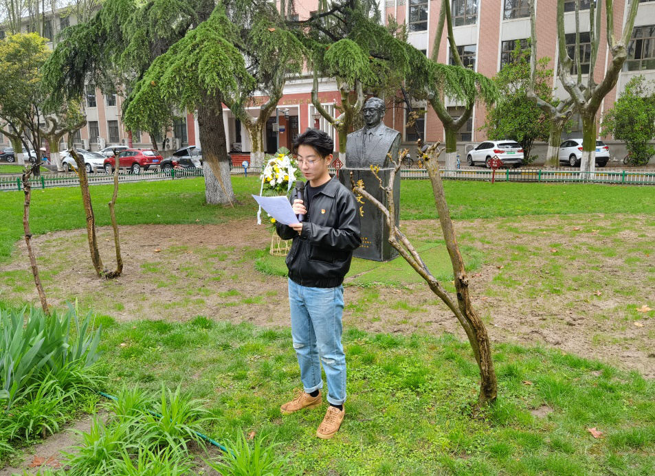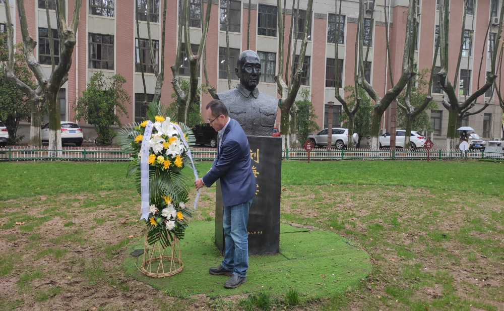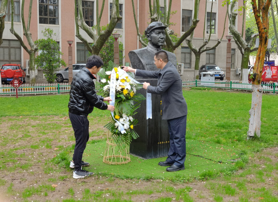 党委书记孙华强,教育基金会副主任徐伟侠,校友会副主任刘江和学生代表分别向三位老领导的铜像敬献花篮,寄托我们的哀思,表达我们向先辈学习的决心。
