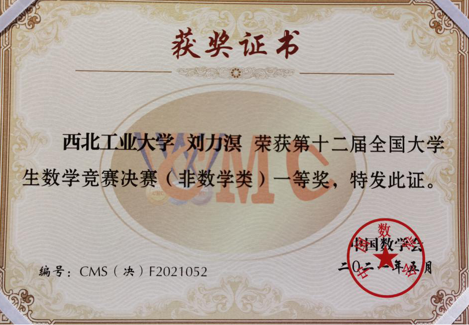 刘力溟同学以优异成绩荣获第十二届全国大学生数学竞赛(非数学类)决赛一等奖,为海院学子参加全国大学生数学竞赛获得的最好成绩,本次比赛动漫屋