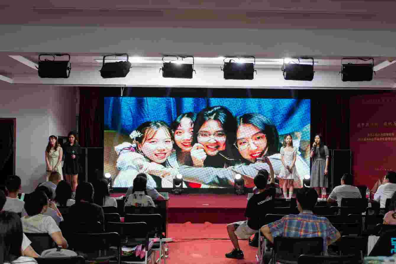 晚上7点,学院在东配楼举办了2021届毕业晚会,随着暖场毕业视频上一张张承载着同学们学习生活点滴的照片,晚会拉开了序幕。