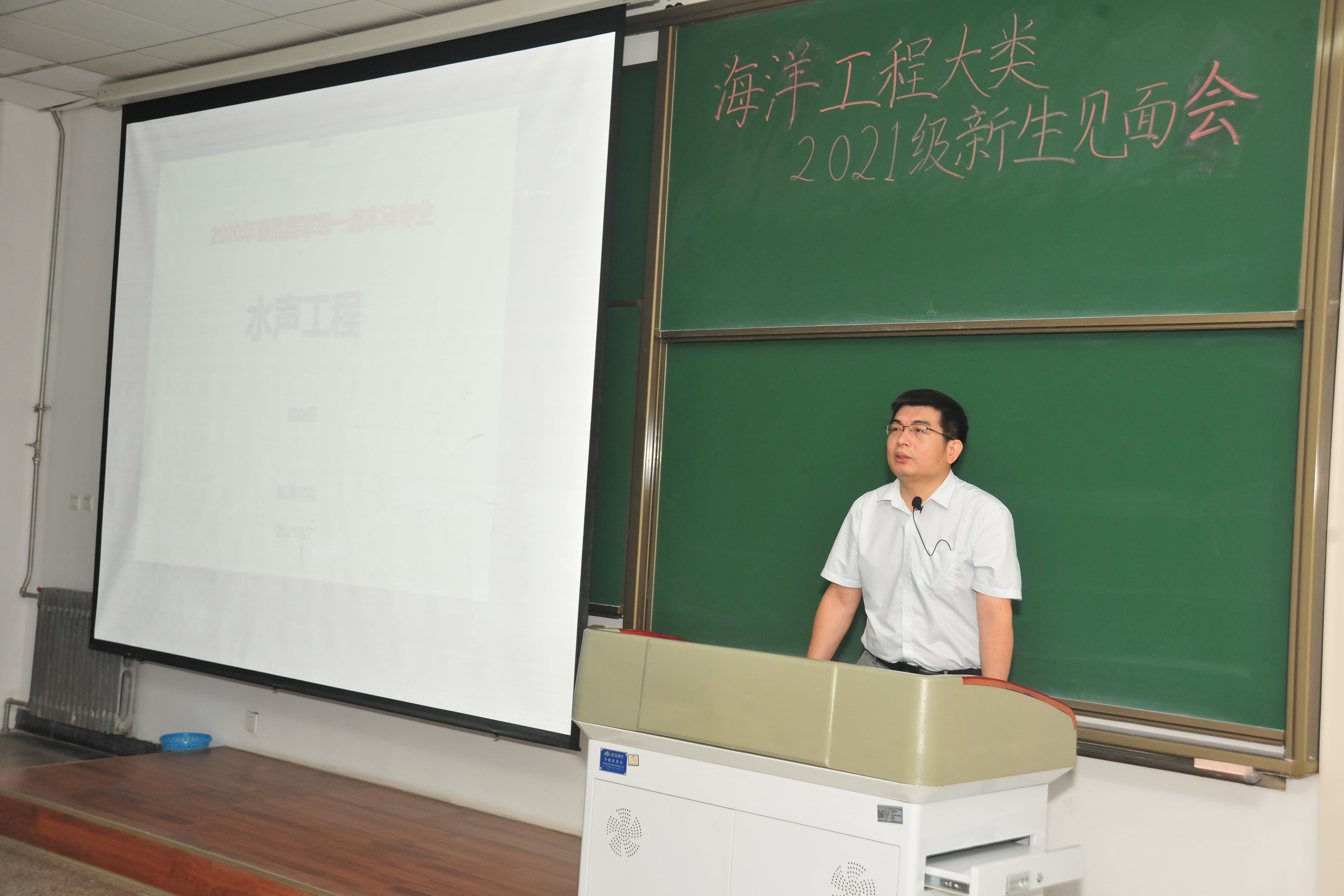 随后,专业负责人分别做专业介绍。船舶与海洋工程专业负责人胡海豹教授、水声工程专业负责人曾向阳教授、信息工程专业负责人张群飞教授分别从专业概况、师资队伍、教学团队、科研获奖、人才培养、就业发展等方面全方位介绍了本专业,让同学们对学院的专业设置有所了解,为将来分专业做好准备。最后,三位负责人向新生同学们表示欢迎,动漫屋