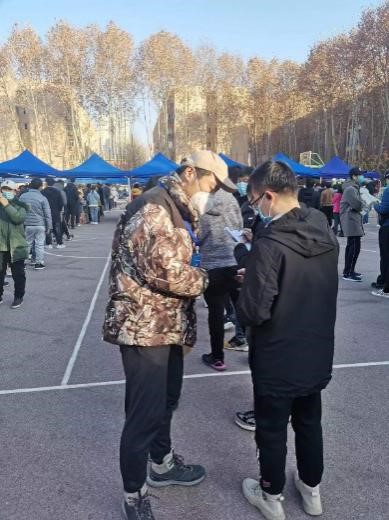 在校内,团队成员积极响应学校学院号召,不仅在基础防疫工作中担任志愿者,例如自觉担任送餐服务志愿者、洗浴值班志愿者、出门检查票据志愿者等。同时还报名参加学校紧缺岗位的机动志愿服务,参与学校防疫工作,例如核酸检测志愿者,食堂值班志愿者,生活和防疫物资发放志愿者等等。而这繁琐却不平凡的志愿服务,也锻炼了党员同志的心智。