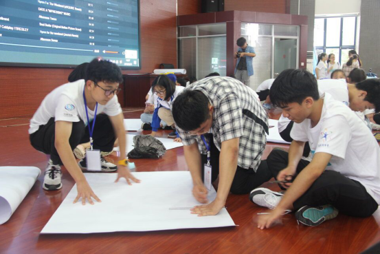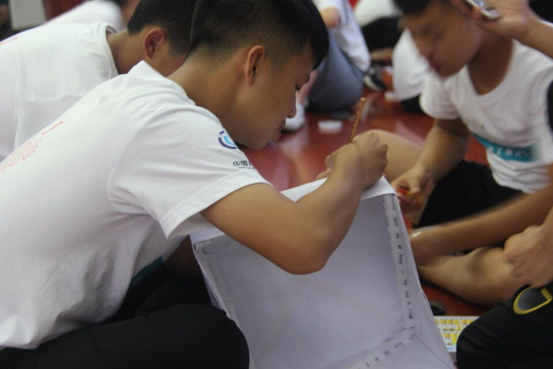 的学长学姐们为营员们耐心讲解了制作纸船的详细步骤及纸船承重的比赛规则,并告诉同学们防水是关键,结构是根本,鼓励他们大胆创新,积极探索。比赛正式开始,科学营的同学们结合学长学姐们的讲解和这几天学到的航海方面的相关知识,积极讨论,认真构思,确定制作方案。