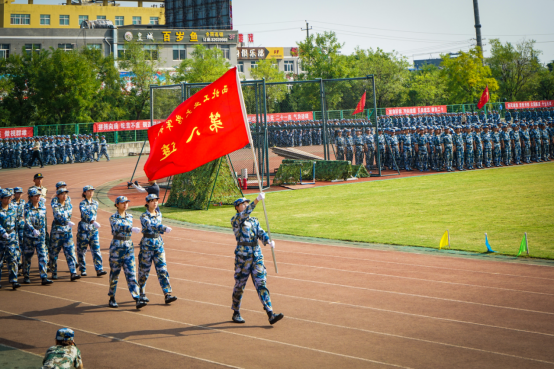 在云天苑操场上,新生们准备接受校领导和师长的检阅。威武的解放军进行曲结束后,汇演正式开始,每一位同学都拿出了最好的精神风貌迎接检阅。