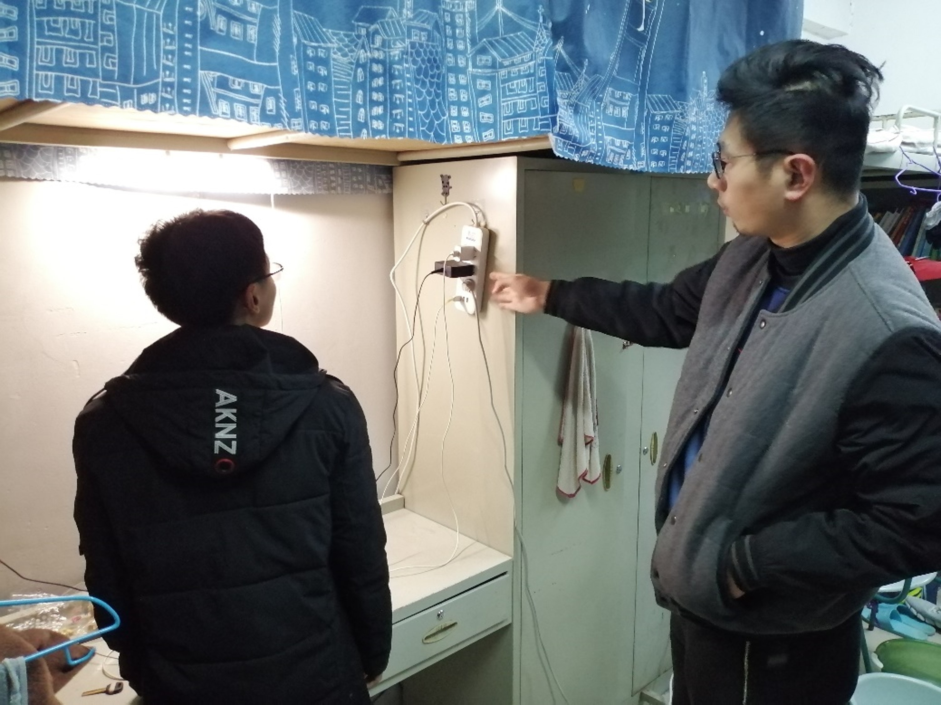 在此次深入检查中,院长助理张龙强调最多的是安全问题,尤其重视学生用电安全与防火安全问题。在亲自察看学生插座、电路等情况之后,他强调:“安全意识时时刻刻不能松懈,一定要避免在宿舍使用一切大功率电器,插排选择有质量保证的产品,电源和插座附近避免放置易燃物品。一定要将宿舍安全隐患消除在萌芽、化解的源头”。张龙老师带队的动漫屋
