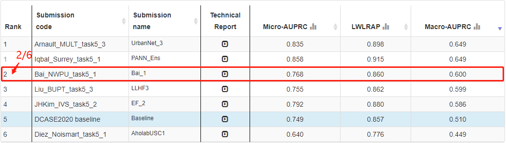 近日,第六届国际权威声学场景和事件检测及分类竞赛(Detection and Classification of Acoustic Scenes and Events, DCASE 2020)公布了比赛结果,由我院陈建峰教授指导,博士生白吉生、硕士生陈晨参与的声学感知团队再创佳绩。在Task5基于时空语境的城市声音标注(Urban Sound Tagging with Spatiotemporal Context)赛事中斩获国际第二,国内第一的成绩;在Task2机器异常声音的无监督检测(Unsupervised Detection of Anomalous Sounds for Machine Condition Monitoring)赛事斩获国内第二,国际第十八的成绩。