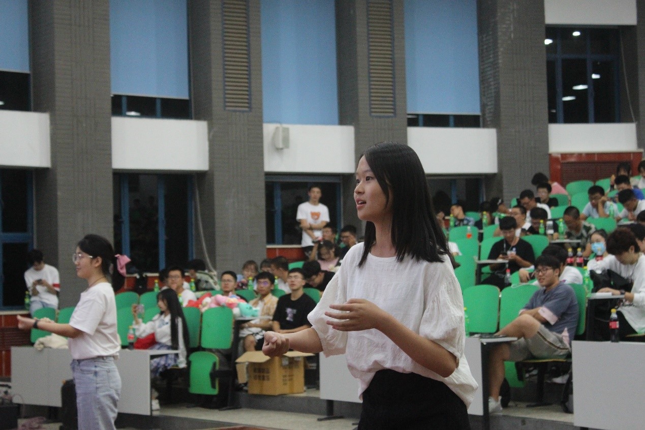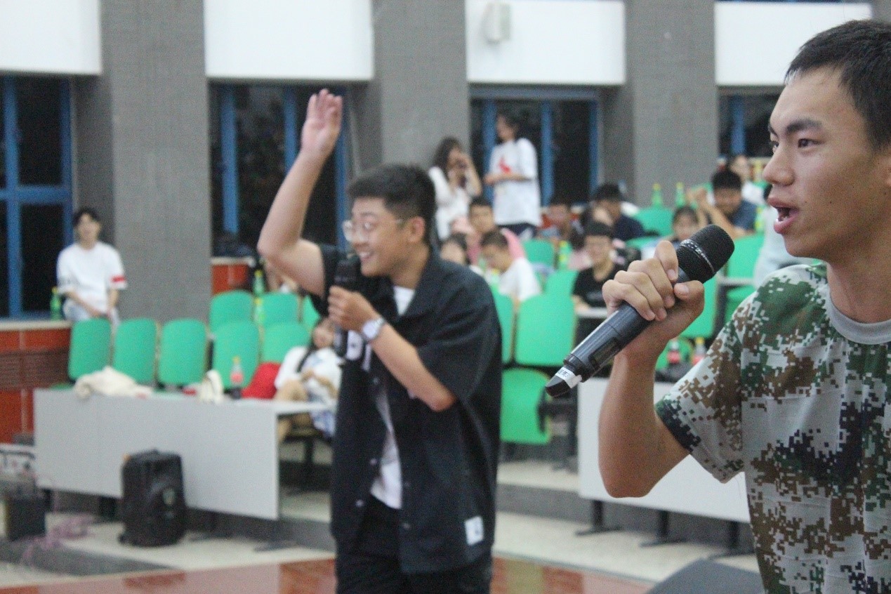 慰问演出正式开始,首先是由2019级胡滉同学带来的独唱演出《第二杯半价》。19级的学长带动了全场的氛围,随后几个节目更是将现场气氛拉至高潮。在音乐与欢乐中,迎来了的是游戏环节你画我猜。三组互动选手你来我往,十分精彩。游戏之后又是一轮声乐演出,在忘情的歌声中,逐渐到了最后一项节目——《谁是卧底》。当喧闹与欢乐结束后,是宣讲活动的开始,社团宣讲可谓是百花齐放,所有社团都热情欢迎各位同学的到来。