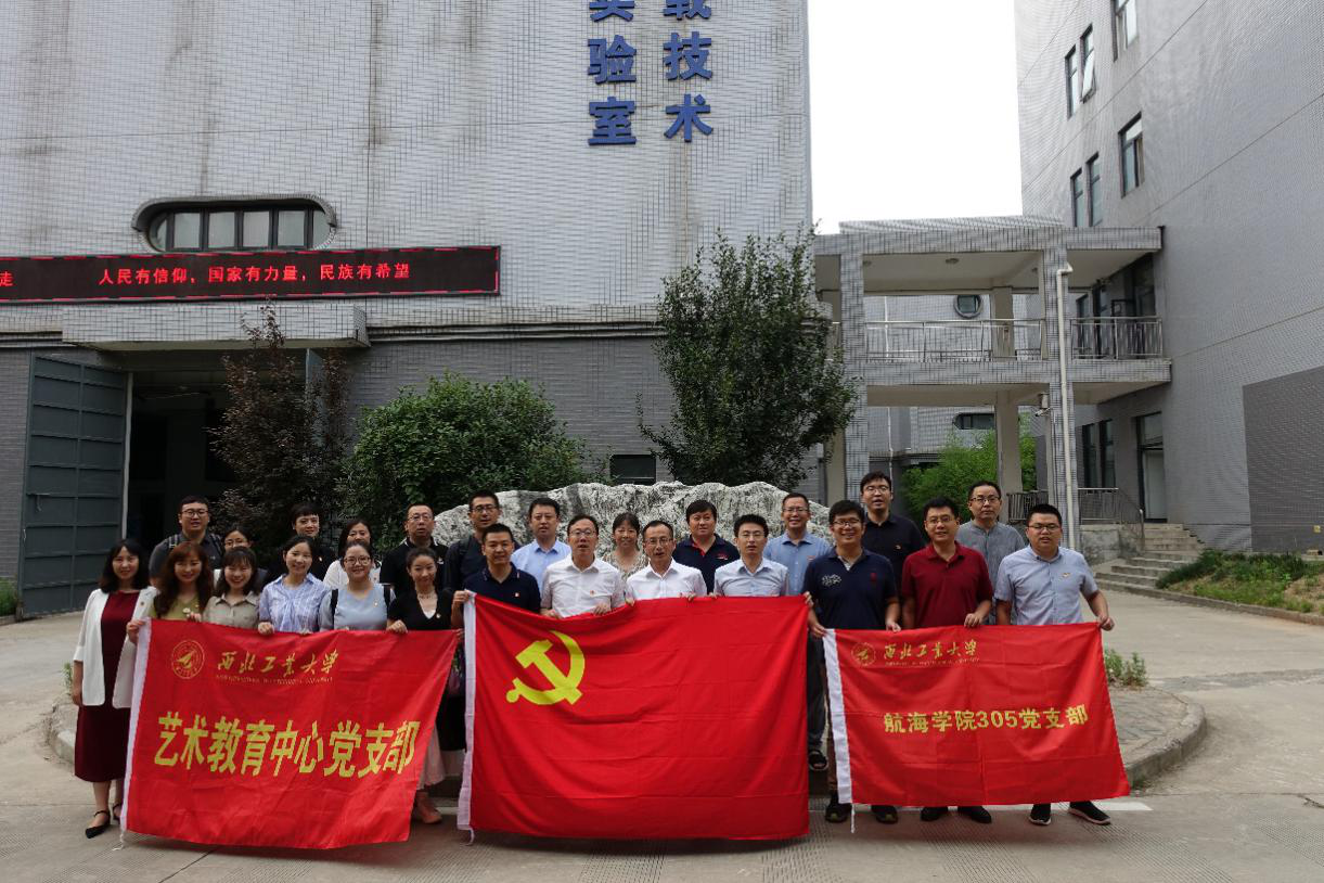 最后潘光和孙华强带领艺术教育中心党支部一行参观了无人水下运载技术工业和信息化部重点实验室,双方成员在水池前合影留念。