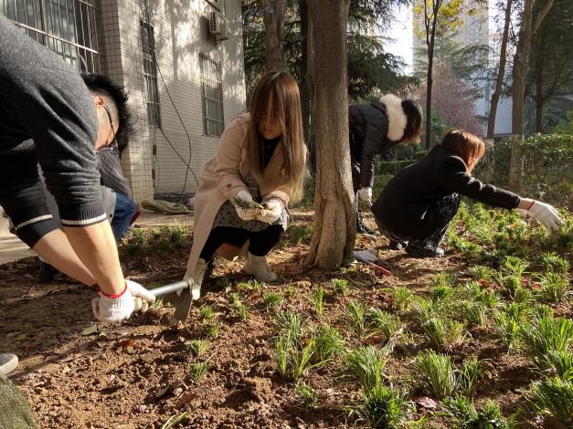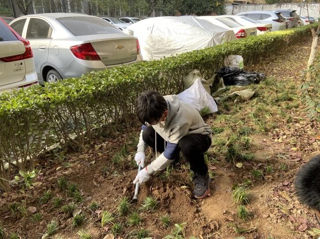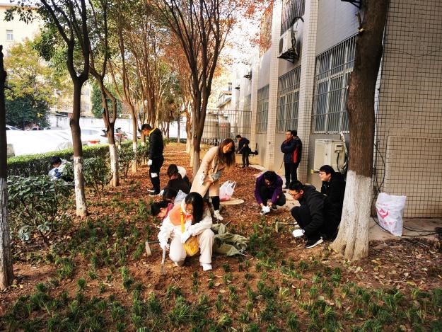 组织友谊校区本科生党支部同学全面配合学校后勤产业集团的校园秋冬季绿化计划,于动漫屋
