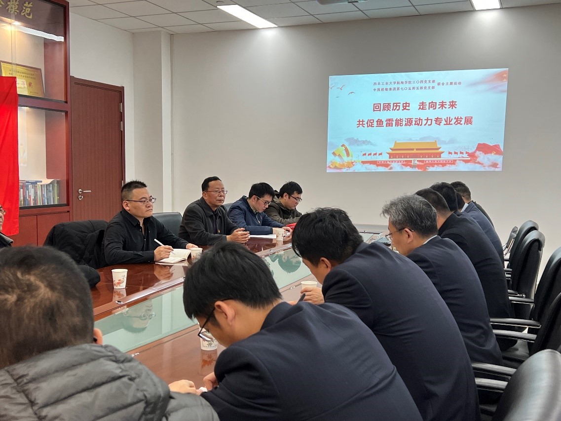 党委委员党建军,304党支部书记李代金,支部委员黄闯、秦侃,罗凯教授及部分青年教师代表等一行7人到中国船舶重工集团公司第705研究所能源动力研究部,共同开展主题为“回顾历史,走向未来”的联合主题党日活动。705所科技委主任史小锋,能源动力研究部党支部书记、部长梁跃出席活动,参加活动的还有能源动力研究部党支部全体支委、各研究室主任和副主任、党员代表。主题活动在705所能源动力研究部12楼会议室进行,由能源动力研究部党支部书记、部长梁跃主持。