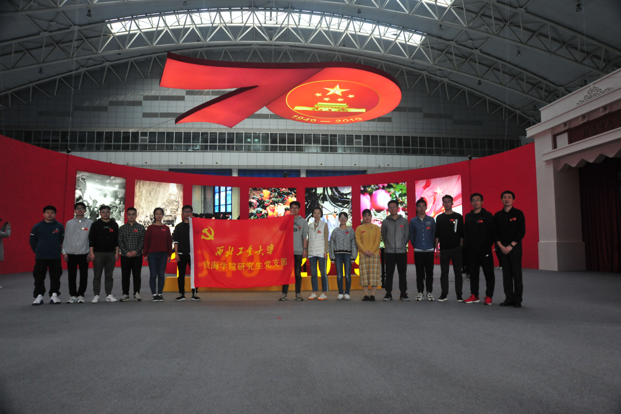 入党积极分子和辅导员庆老师一起,走进展现新中国成立70年来特别是党的十八大以来陕西各领域各行业走过的光辉历程、发生的历史性变革、取得的历史性成就,以及陕西对新中国建设作出的突出贡献的展览现场。面积超7000平方米、长度1000米的展厅,近千幅珍贵的图片、近400件不同年代的实物展品,牢牢地吸引了同学们的目光;生动的文字介绍和音频、视频等多媒体现代化手段、集5G、AR多项技术于一体体验式互动场景和我校“魅影”无人机、微小卫星等重磅展品,大大地触动了同学们的感官;展厅里“家国情怀、追赶超越、不忘初心”三个部分所体现出深沉的爱国情怀、高远的历史格局、浓重的陕西地方特色等元素,深深地震撼了同学们的心灵。