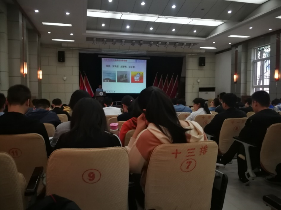 随后,刘义校友结合个人成长历程,回忆了自己在校的学习岁月,引起了在座学生的广泛共鸣。接着,他又介绍了自己在法士特的工作经历,为大家讲述了在项目研发过程中如何解决困难,最后攻克多项技术难关的故事,为同学们在科研道路上不断克服险阻提供了一个优秀的榜样力量。最后,他对未来进行了美好的展望,为同学们在今后的科研和成长过程中开阔了思路,树立了希望。