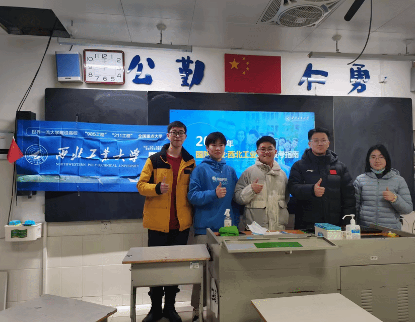 寒假期间,他参加了学生大使回访母校的活动,与众多双一流高校的校友回高中母校参加宣讲会,满怀热忱地为学弟学妹们介绍西工大。