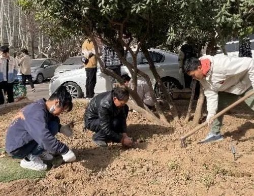 联合学校后勤集团物业服务中心,在友谊校区新图书馆前举办了“我为校园添新芳,劳动育人显成效”主题植树节活动。此次活动由学生第十党支部、2021级硕士团支部发起,各学生党、团支部成员踊跃参加。
