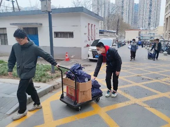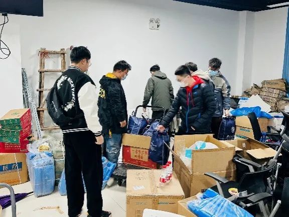 18日上午8点,同志们准时集合,开始紧张的前期准备工作。在负责人的指导下,大家分组配合,对活动所需的马克笔、胶带等办公用品、毕业生信息册、展板等进行分类、整理和转运。