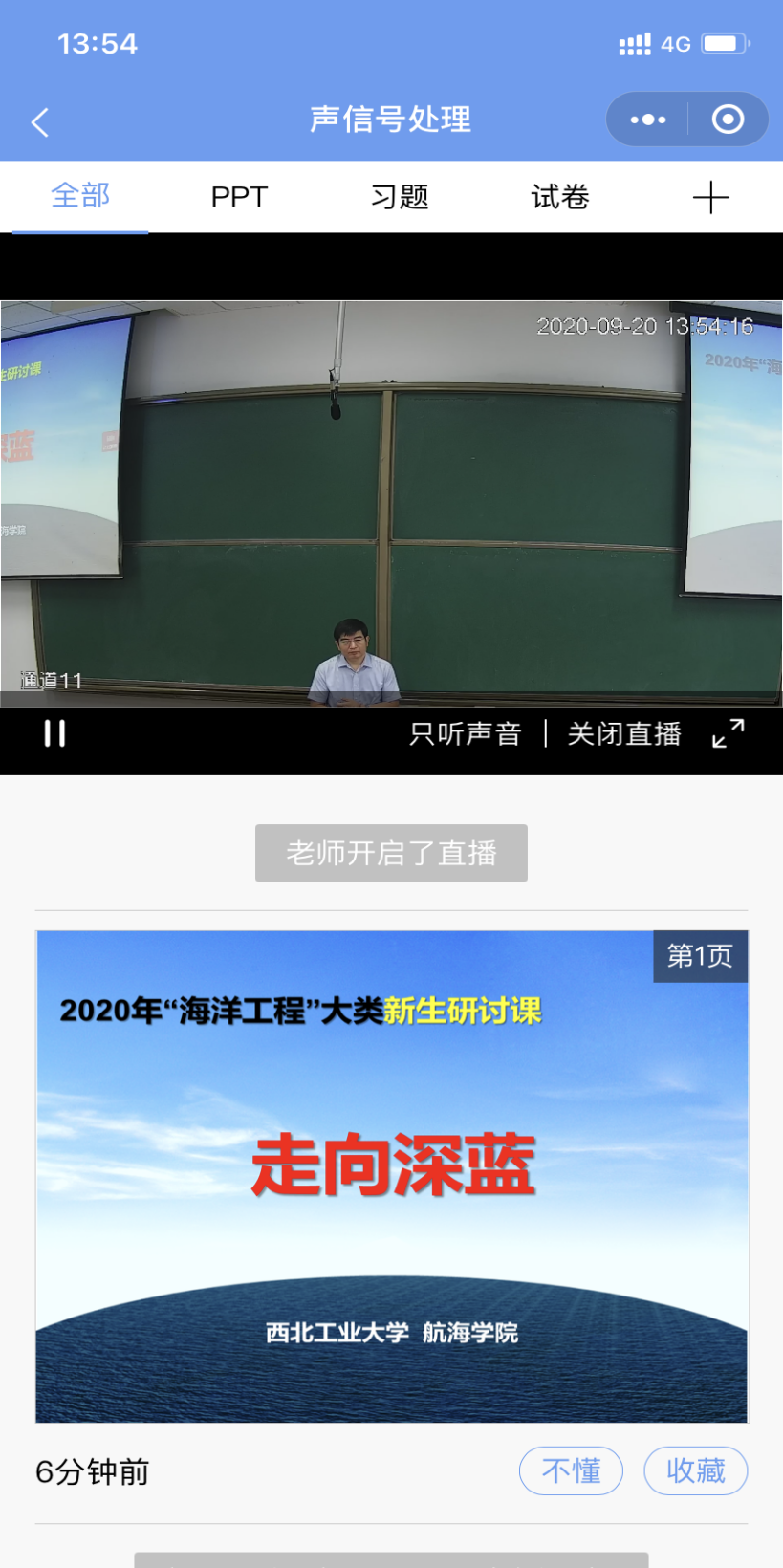 2020年“海洋工程”大类新生研讨课开讲,副院长曾向阳教授为海院学子带来了本学期“走向深蓝”第一讲,课程全程线上线下同步进行,学生可以使用雨课堂同时线上收看。