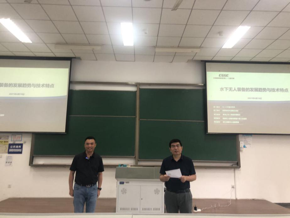 讲课伊始,王所长介绍了中国船舶集团公司第七一〇研究所的基本情况。随后,他梳理了美军体系作战概念演进进程,分析了未来海上作战发展趋势,讲述了美海上无人装备发展概况,重点描述了我国无人装备发展重大意义及趋势。接着,他介绍了清江创新中心的基本情况、研究方向、建设目标等。最后,王所长鼓励同学们要关注前沿和热门的技术,早点规划未来的学习方向。
