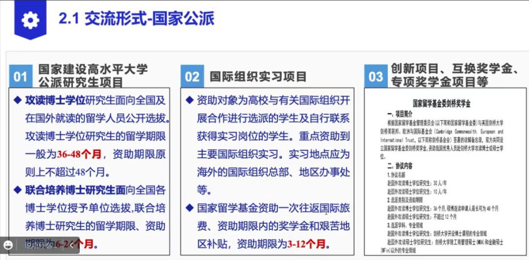 首先,韩振讲解了从国家到学校层面不同国际项目的详细内容。让出国留学、出国交换这个理念不再遥不可及。无论是国家层面的项目包括国家公派项目、国际组织实习、创新项目交换等,还是重点介绍的学校合作项目“n+n”类型,其选择与项目之丰富涵盖了几乎学校所有的专业。不论你目前就读于哪一专业,都有很大希望找到合适你的留学项目!
