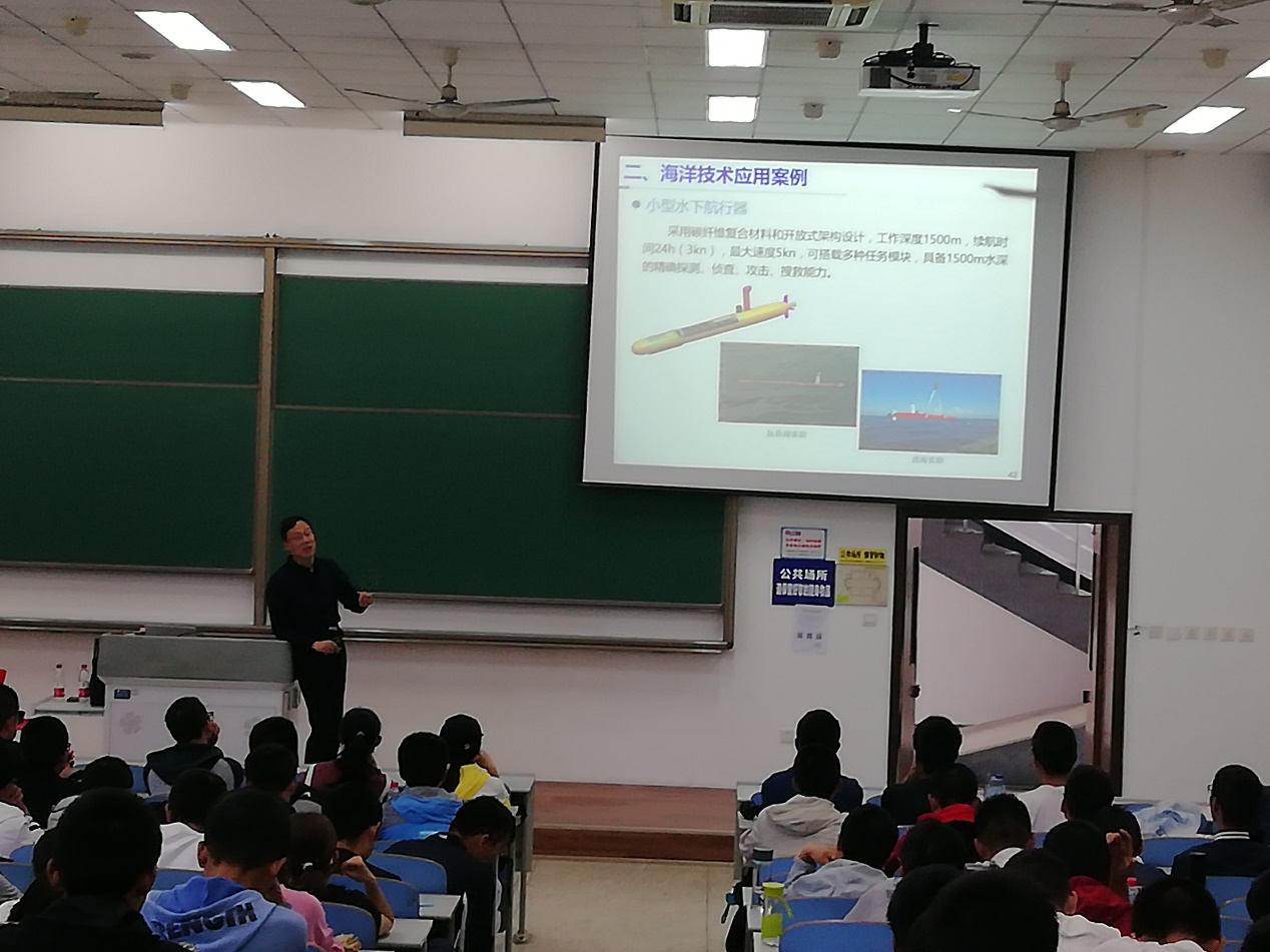 院长潘光教授以“海洋技术创新发展”为题,为海院的新生们讲述国家海洋技术的现状以及发展前景。