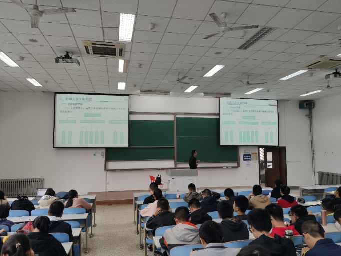随后,严老师介绍了机器人的定义以及各类典型机器人的现状。当同学看到各种各样当今世界上先进的机器人时,大家发出了惊叹声,没有想到如今的机器人已经发展的如此先进;当同学们了解到水下作业机器人多种多样的应用场景及其强大的作业能力时,大家也都为之赞叹;当同学们得知现今先进的水下作业机器人大都是国外研制,国内还没有最先进的水下作业机器人时,也都为此感到惋惜,希望自己将来能为此做一点贡献。