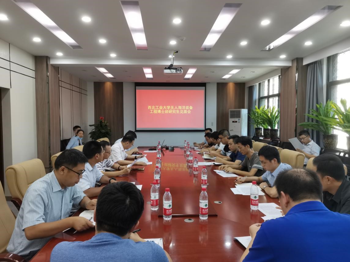2020年无人海洋装备工程博士班新生见面会,院长潘光、党委书记孙华强、副书记王银涛、副院长曾向阳、副院长杨坤德、副院长崔荣鑫和来自中国船舶重工集团公司、中国兵器工业集团公司、中国航天科工集团公司、重庆前卫科技集团有限公司、中国科学院西安光学精密机械研究所等单位的19名工程博士新生一起参加了会议,会议由崔荣鑫副院长主持。
