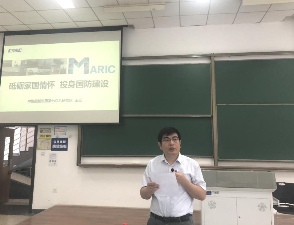 2021年5月29日上午10:30,在长安校区教西D106教室迎来“感悟深蓝”课程第三讲,由我院杰出校友、中国船舶集团公司第七〇八研究所党委副书记(主持工作)、副所长王征面向动漫屋