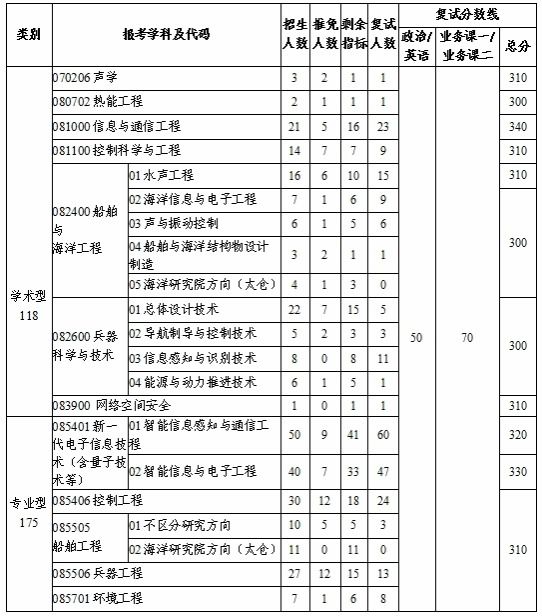三、各学科专业复试分数线